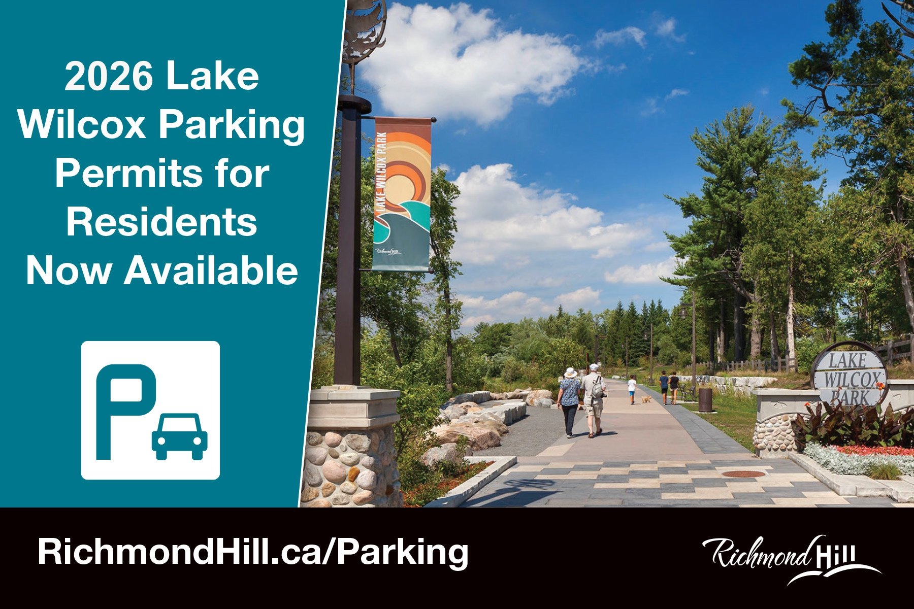 Once again, pay parking at Lake Wilcox Park will be in effect April 1 through September 30. Richmond Hill residents are invited to get their free parking permit for the park and community centre online at Parking.RichmondHill.ca.